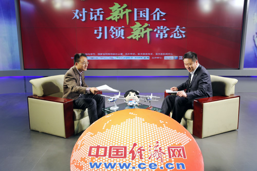 中航通飛華北飛機(jī)公司董事長(zhǎng),黨委書記張樞瑋做客《中經(jīng)在線訪談特別節(jié)目——對(duì)話新國(guó)企,引領(lǐng)新常態(tài)》。裴小閣/攝